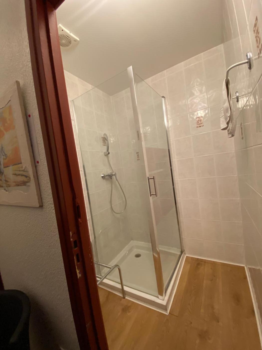 Chambre Double avec Salle de Bains Privative. Cette chambre double dispose de la climatisation. La salle de bains privative est pourvue d’une douche et de toilettes. Elle est située dans le couloir. ;