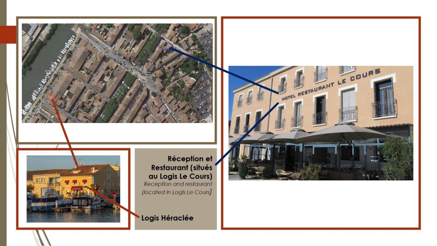 Immeuble dhébergement seulement - La réception et le restaurant sont centralisés au Logis Le Cours à 300 mètres au 10 avenue Francois Griffeuille 30800 St Gilles.La remise des clés seffectue au Logis Le cours.